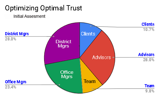Step 1: Choose the Stakeholders in an organization to Optimize Levels of Trust. In the case of XYZ Financial, we are choosing: Clients, Financial Advisors, Team Members, Office Managers, and District Managers
